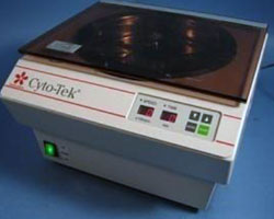 Cyto-Centrifuge Sakura Cyto-Tek 4332 Specification: The Cyto-TekĀ® Cyto-Centrifuge is a bench-top centrifuge for cytological specimens that transfers cells from fluids to glass slides for microscopic examination. It will operate at speeds from 500 to 2.500 rpm, adjustable in increments of 100 rpm, for periods from 1 minute to 60 minutes. The centrifuge has a 12-specimen holder capacity. |